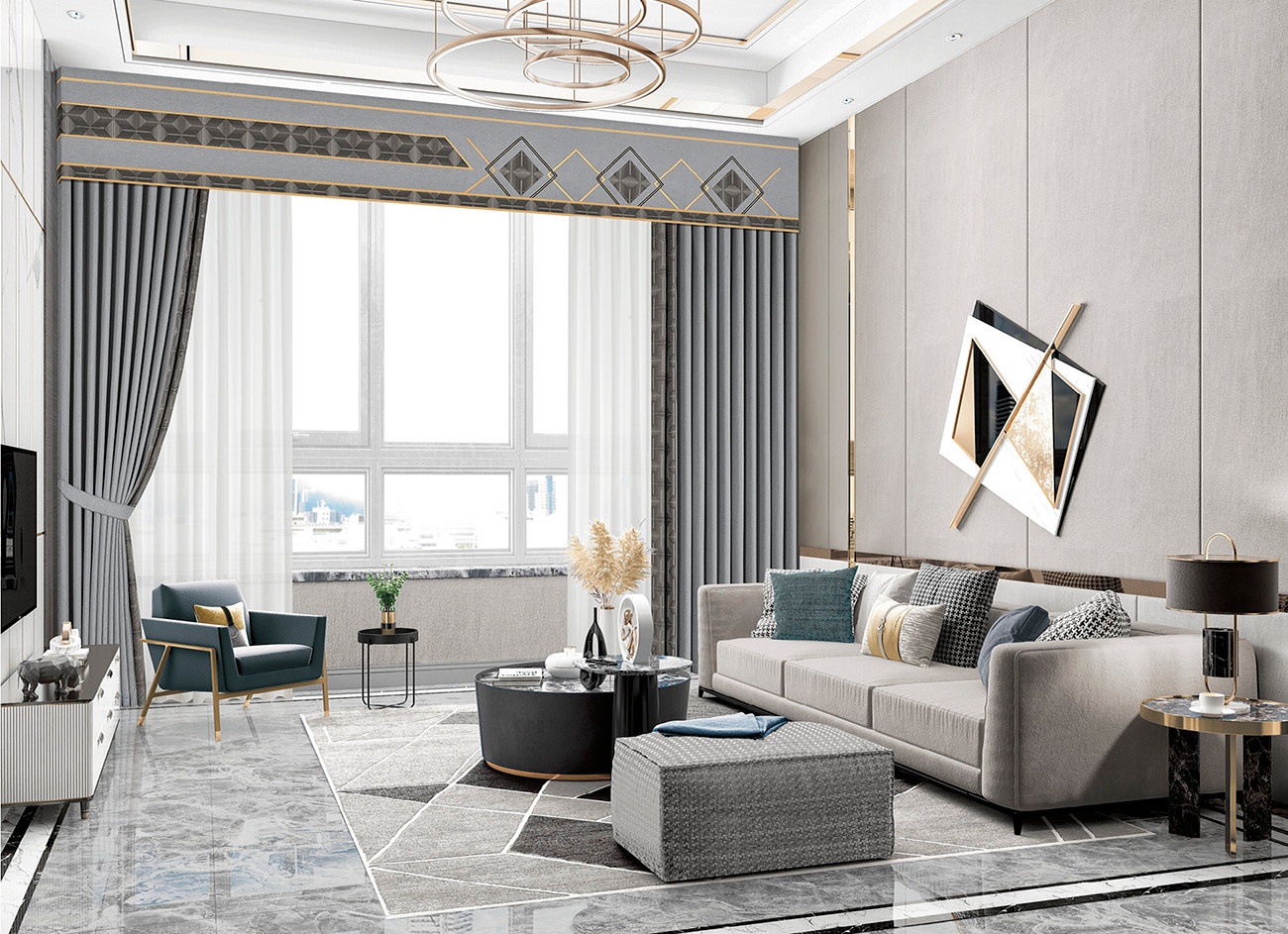 汲取銀河的色彩靈感,搭配現(xiàn)代幾何線條,用于窗簾,兼具典雅與時尚。