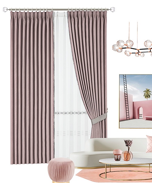 略帶灰度的煙粉,讓布藝蒙上淡淡的腺朧感。巖層般的紋理,賦予布藝一種斑駁的時尚美感。