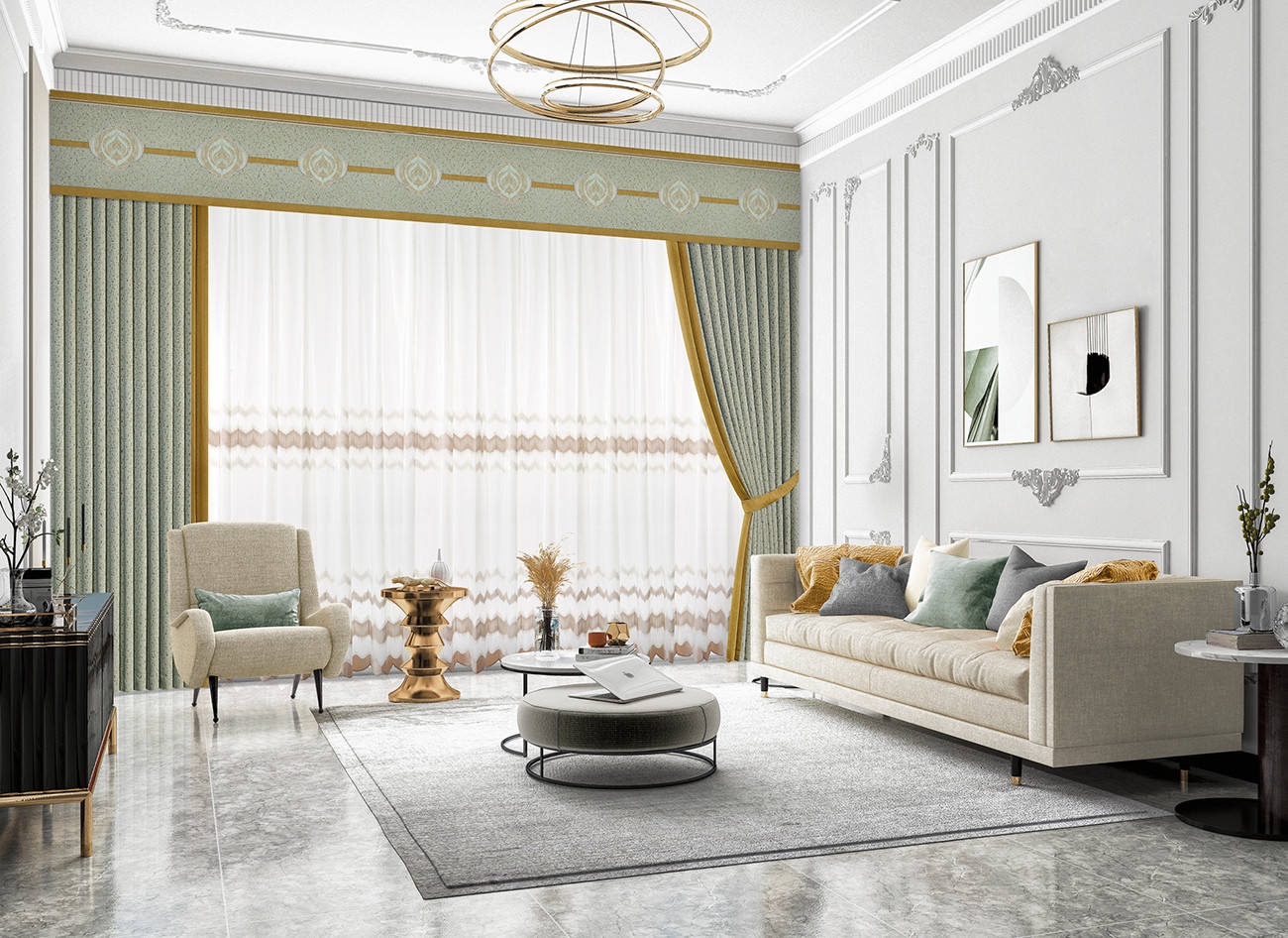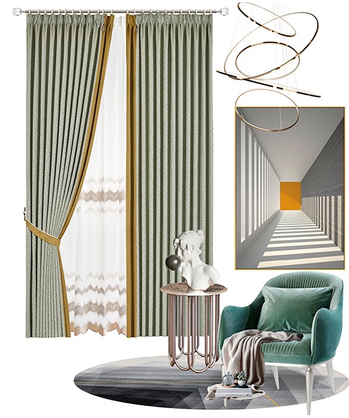 略帶灰調(diào)的綠色就像籠罩著霧氣的森林,視覺上明凈舒爽?;◢弾r般的紋理賦予面料獨特的斑駁印跡,做舊的設計帶著獨特的懷舊腔調(diào)。
