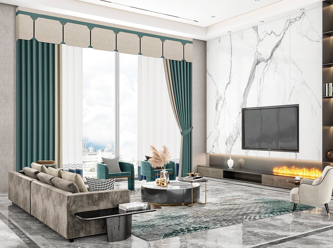低調(diào)純凈的藍(lán)綠色如同靜待時(shí)光召喚的夢(mèng)境叢林,與米灰色流暢自然的過(guò)渡渲染出時(shí)尚而清新的視覺(jué)享受。簡(jiǎn)約而優(yōu)美的方形依次排列,強(qiáng)勢(shì)而規(guī)律的美感折射著內(nèi)涵豐富的動(dòng)人魅力,精致的金色鹿頭裝飾,讓貴族氣質(zhì)彰顯無(wú)疑。